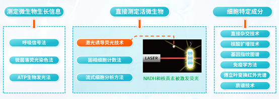 為克服傳統(tǒng)微生物檢測(cè)方法的局限,滿足快速放行的需求,微生物快檢技術(shù)應(yīng)運(yùn)而生。快檢技術(shù)分為三類(lèi):測(cè)定微生物生長(zhǎng)信息、直接測(cè)定活微生物、測(cè)定細(xì)胞特定成分。其中,激光誘導(dǎo)熒光技術(shù)作為一種無(wú)損檢測(cè)技術(shù),在水質(zhì)檢測(cè)中尤為重要,為傳統(tǒng)檢測(cè)方法帶來(lái)革命性的改變。